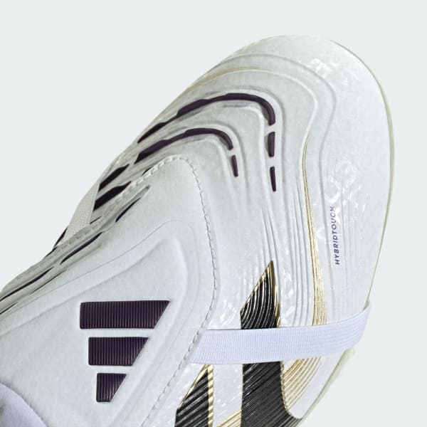 Discover the difference between aiming to score and knowing you will with adidas Predator cleats that are crafted for goals. These Pro soccer cleats have a flexible HybridTouch upper with a fold-over tongue and grippy rubber Strikeskin fins that help control every strike of the ball. Turn them over and you'll find a full-length Controlplate outsole designed to keep you stable on dry grass.