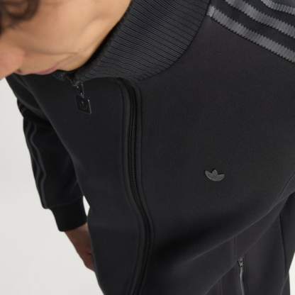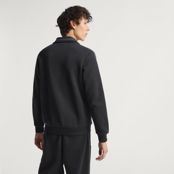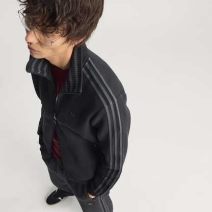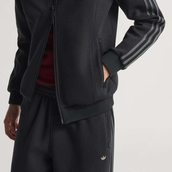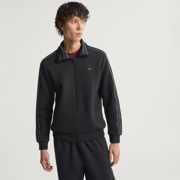 The slim fit of this adidas track top skims the body for a modern look, while the ribbed cuffs and hem keep it grounded in classic sport. The collar can be left up with its high cut, or folded down to reveal the integrated 3-Stripes on the interior.