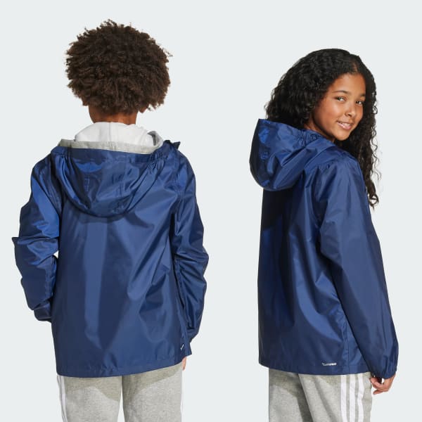 This rain jacket from adidas lets you embrace the great outdoors, whatever the weather. It's seam-sealed, waterproof and windproof to keep you warm and dry through it all. Reversed-entry pockets keep stuff safe and dry, too. A hood with gathered bindings offers a snug fit, so blustery conditions are no match for an adventurous spirit. CLIMAPROOF locks out weather and helps sweat escape for dry, comfortable and unrestricted performance.CLIMAPROOF locks out storms with waterproof materials and design to block harsh weather. Stay free from wind with wind-resistant and breathable material for extra comfort. Engineered features boost protection and breathability.