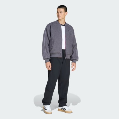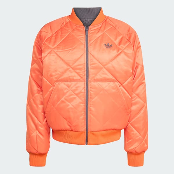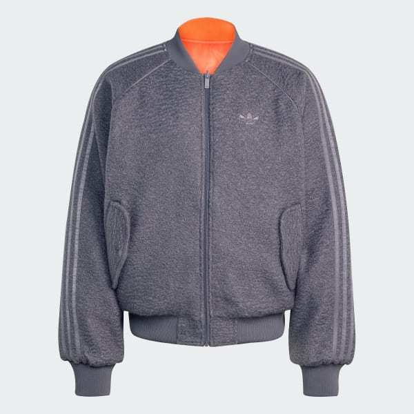 The adidas Reversible Superstar Bomber Jacket is a warm layer pairing style and versatility this winter. With a fully reversible design, you can switch between the more muted grey strata side with boucle outer and zipper side entry pockets and the vibrant semi-impact orange nylon side with exaggerated diamond baffles and patch pockets to suit your outfit - and your mood.Crafted with incredible detail and flair, this jacket reflects your sense of eye-catching style while helping you stay warm. The flat knit rib, two-tone reflects the design of the jacket for a touch of sophistication and coordination.Embrace the adidas Originals spirit with multiple graphic branding, including the Trefoil logo and the single fern logo celebrating the iconic All Blacks. Metal hardware branded with Trefoil and a woven sign-off badge complete the unmistakeable look. Whether you're layering up to brave the cold or building your fashion statement, this versatile, yet charismatic bomber is on a mission to keep you comfortable and stylish.