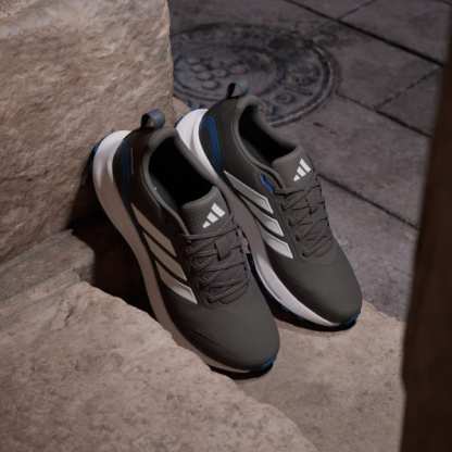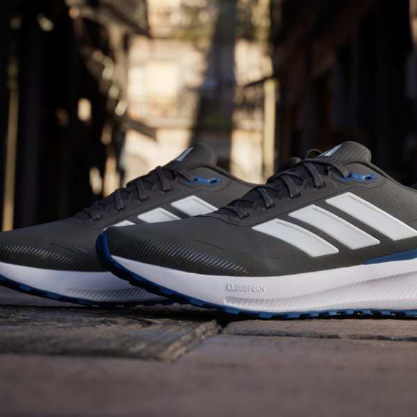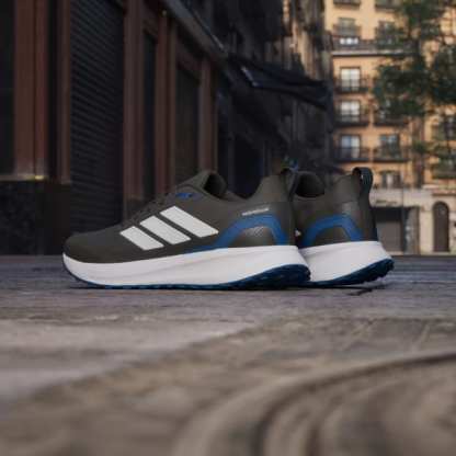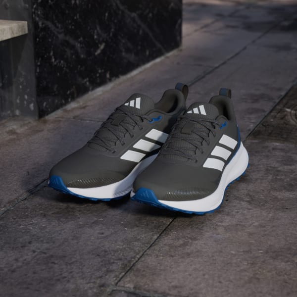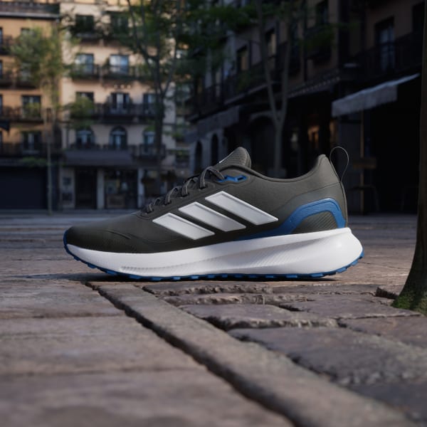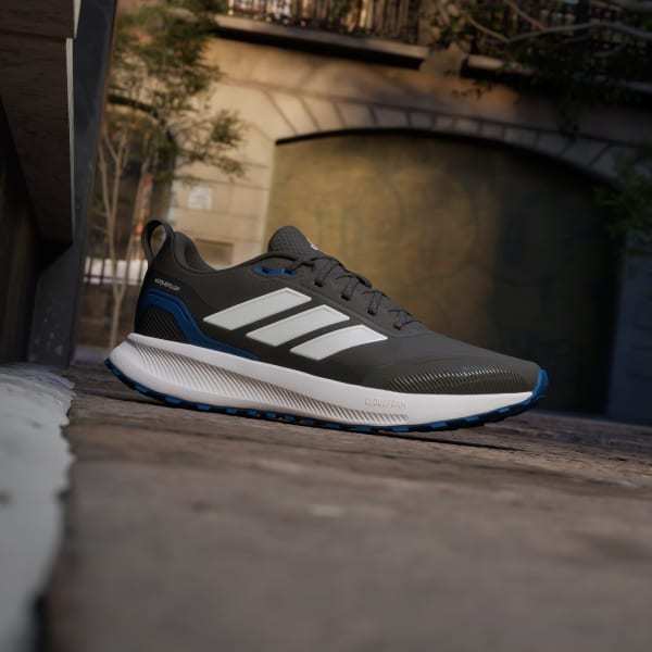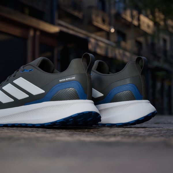 When your run takes you off the track, lace up these adidas running shoes. They're made for adventurous runs on park trails and uneven terrain with a water-repellent upper that sheds splashes of water and a lugged Adiwear outsole that grips as you go. Cloudfoam cushioning gives you all you the plush support you expect from a Runfalcon.