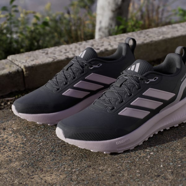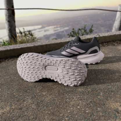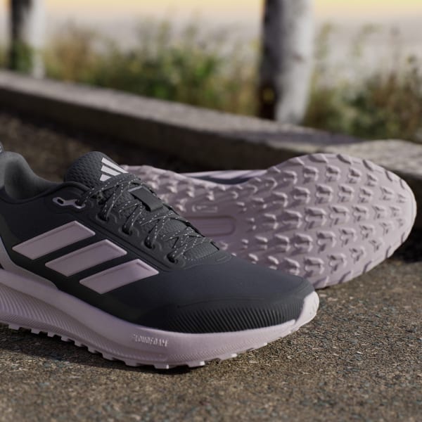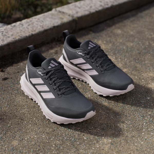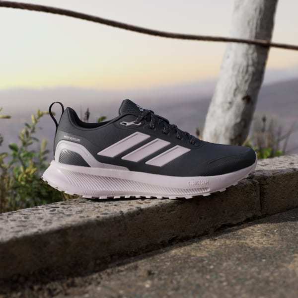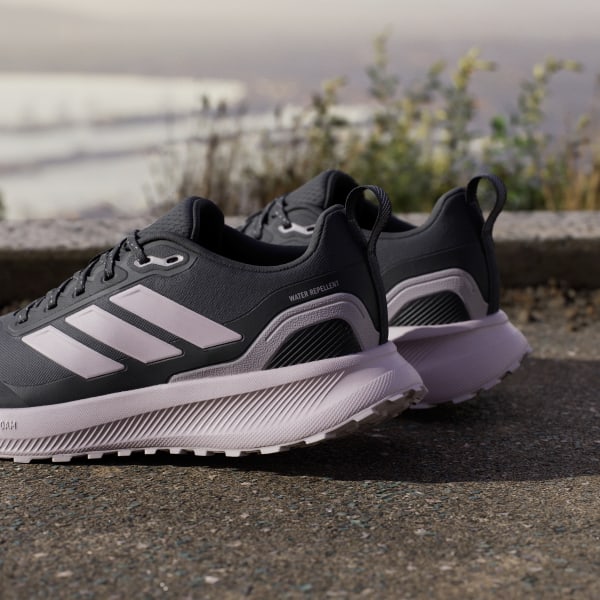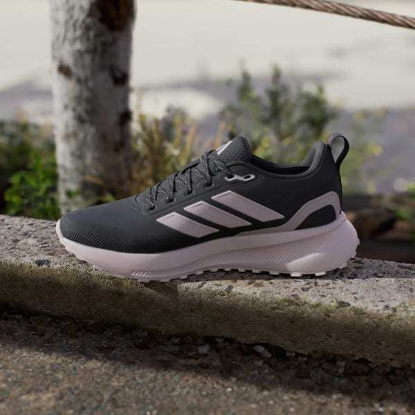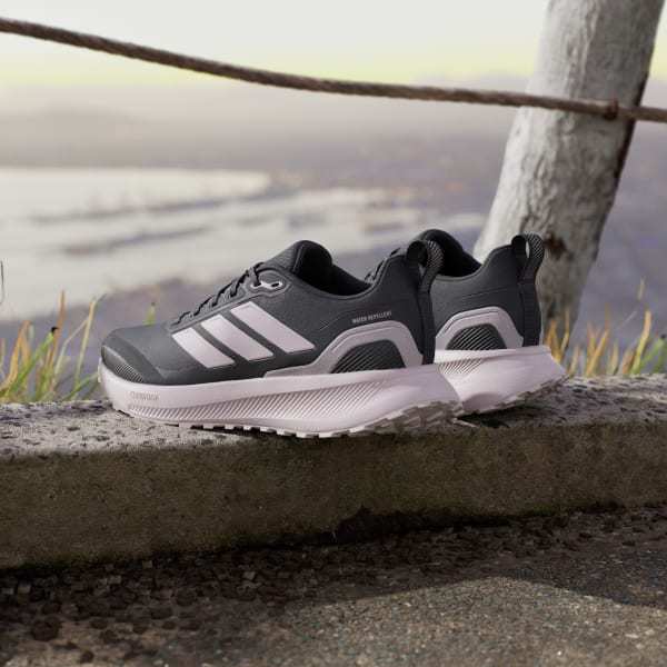 When your run takes you off the track, lace up these adidas running shoes. They're made for adventurous runs on park trails and uneven terrain, with a water-repellent upper that sheds splashes of water and a lugged Adiwear outsole that grips as you go. Cloudfoam cushioning gives you all you the plush support you expect from a Runfalcon.