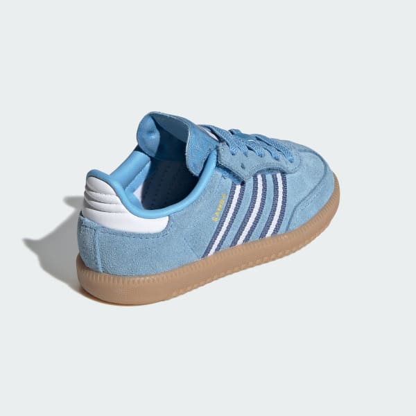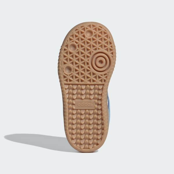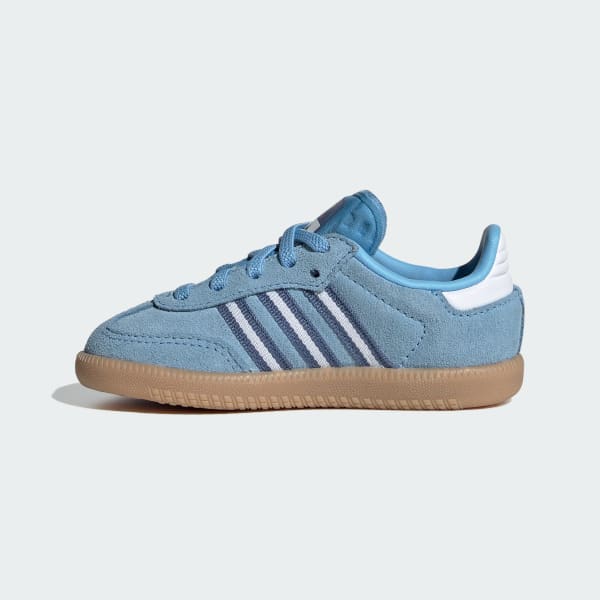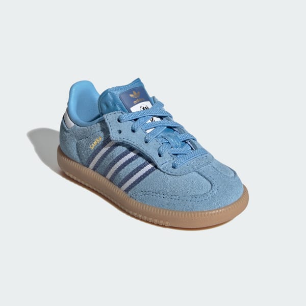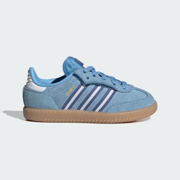 Embrace a new generation of a design classic with the adidas Samba OG Comfort Closure Elastic Lace Shoes. These timeless shoes have been kicking through the decades since the 1950s, from soccer fields to skate parks. The elastic laces and hook-and-loop closure make these great for little ones on the go. Finished with gold tongue branding and oil print Samba branding for a blend of style and comfort. The leather 3-Stripes and "SAMBA" signoff, along with the classic Originals tongue branding, add a touch of heritage. With a rubber outsole designed for street surfaces, they provide the grip for everyday adventures.