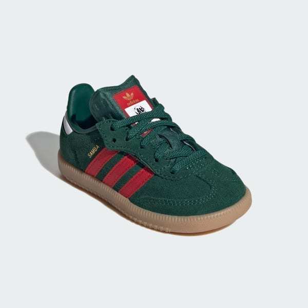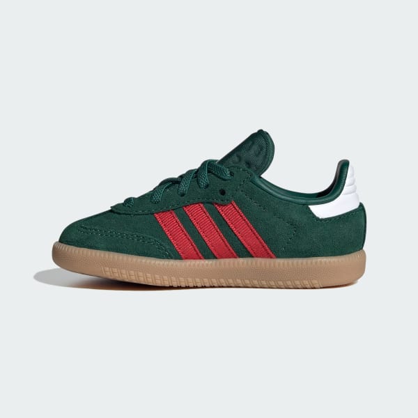 Embrace a new generation of a design classic with the adidas Samba OG Comfort Closure Elastic Lace Shoes. These timeless shoes have been kicking through the decades since the 1950s, from soccer fields to skate parks. The elastic laces and hook-and-loop closure make these great for little ones on the go. Finished with gold tongue branding and oil print Samba branding for a blend of style and comfort. The leather 3-Stripes and "SAMBA" signoff, along with the classic Originals tongue branding, add a touch of heritage. With a rubber outsole designed for street surfaces, they provide the grip for everyday adventures.