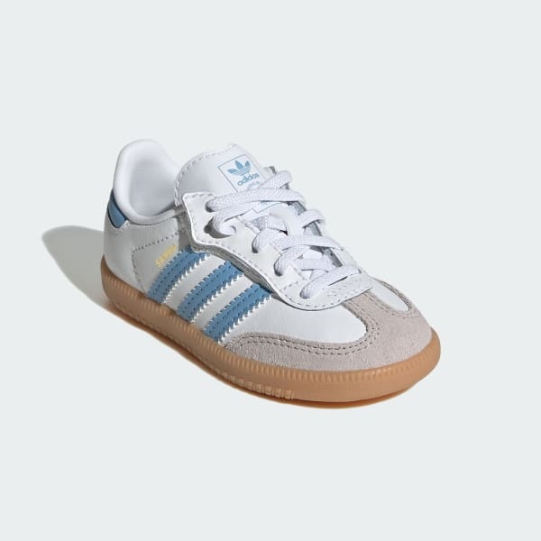 The adidas Samba is a true representation of 3-Stripes style. It's kicked its way from soccer pitches to skate parks since the 1950s, collecting a cohort of fans along the way. These infants' shoes bring back the glory of the original Samba. The smooth leather upper, suede toe cap and serrated 3-Stripes are all here, along with stretch laces that make them easy to slip on and off. The soft lining and flexible rubber outsole are tuned for growing feet.