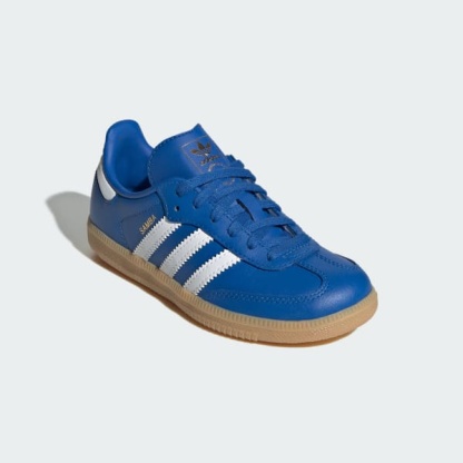 Long gone are the days of the adidas Samba as an indoor training shoe, but even 70 years later, their legacy continues to grow. The rubber gum sole, serrated 3-Stripes and reinforced T-toe keep this style linked to its OG version. Premium details and a smooth leather upper give these kids' iconic sneakers a street-ready look.