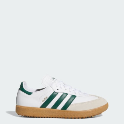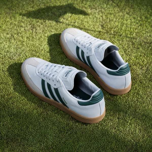 Bring OG style to your next round with these adidas Samba Spikeless Golf Shoes. From the suede details on the leather upper to the iconic T-Toe, these shoes maintain the heritage look of the originals. Course-ready features like a cushioned midsole and rubber outsole designed for confident grip on fairways and greens let you play 18 in comfort, then head to the clubhouse in legacy style.
