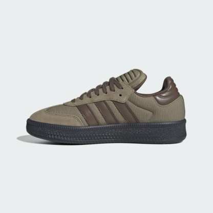 From their beginnings as indoor soccer sneakers, adidas Samba shoes have been making their mark for over 70 years, and they're not done yet. This version gets the XLG treatment, staying true to the original Samba look while adding some utilitarian edge. The leather and textile upper is finished with a suede toe overlay, iconic 3-Stripes and a heel tab for easy on and off. The dark rubber outsole adds attitude to the clean, classic design.