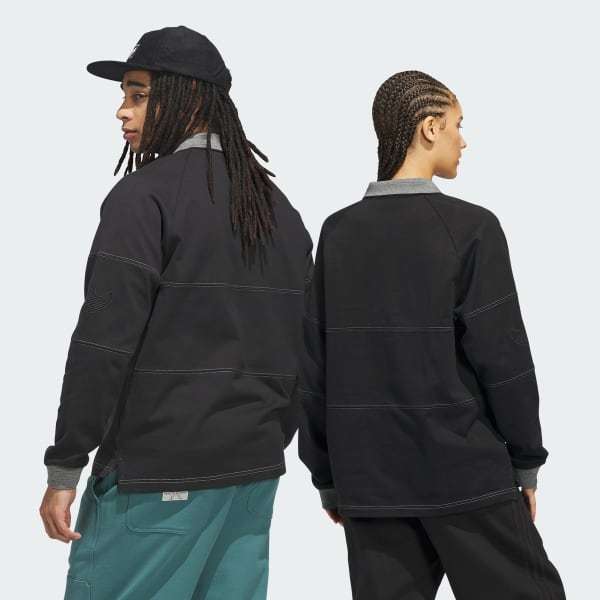 A classic rugby shirt reimagined with a loose fit designed with adidas Skateboarding legend Mark Gonzales. The Shmoofoil Heavyweight Rugby Long Sleeve adds custom artwork and patch detail to a comfortable cotton construction.This long sleeve shirt was made using UNITEFIT — an all-gender fit system that was created with a spectrum of sizes, genders and forms in mind.