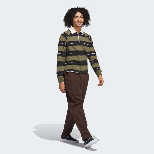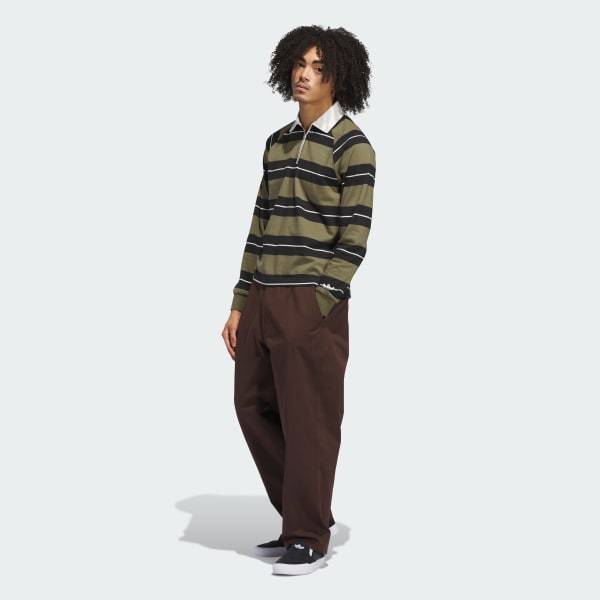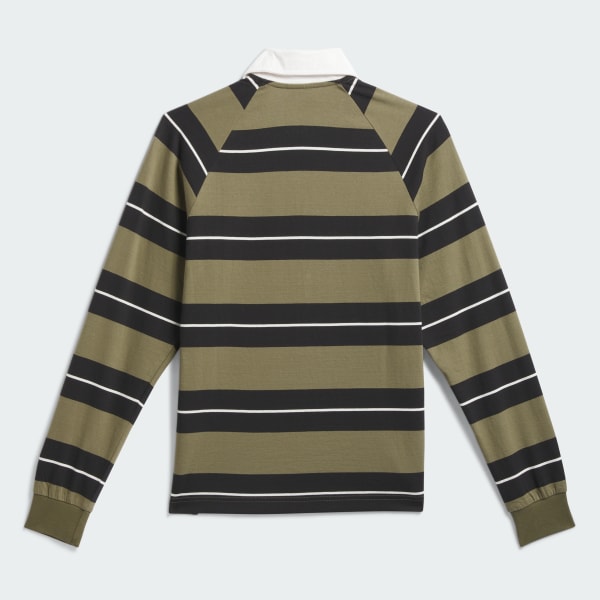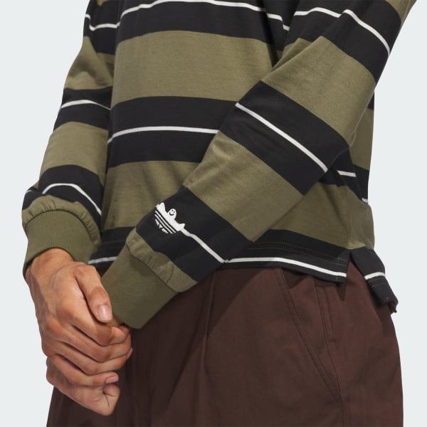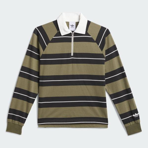 Bringing Mark Gonzales' playful spin to a classic silhouette, the Shmoofoil Rugby Shirt offers a loose fit, quarter-zip construction and a unique, split droptail hem. Featuring Mark's expressive rendition of the iconic Trefoil logo, the shirt boasts custom striped patterns and all-cotton materials.