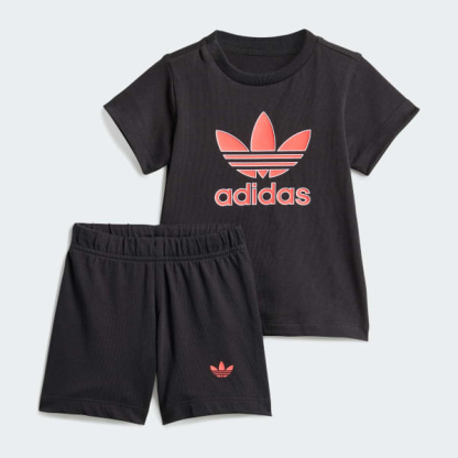 This infants' shorts and tee set from adidas will keep your little one stylish all summer long. The '90s-inspired look is all about nostalgia and laid-back vibes. Bold colors and a large Trefoil logo make a playful statement. Made from soft, smooth single jersey fabric, this set is perfect for everyday adventures.