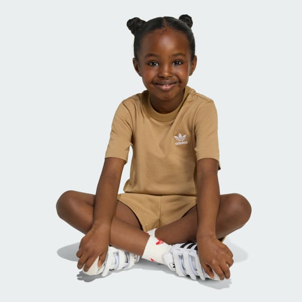 This shorts and tee set from adidas will have kids ready for anything the day throws at them. The monochromatic look makes the Trefoil logo on both pieces pop. An all-cotton build and drawstring waist on the shorts make this set comfortable and easy to wear.