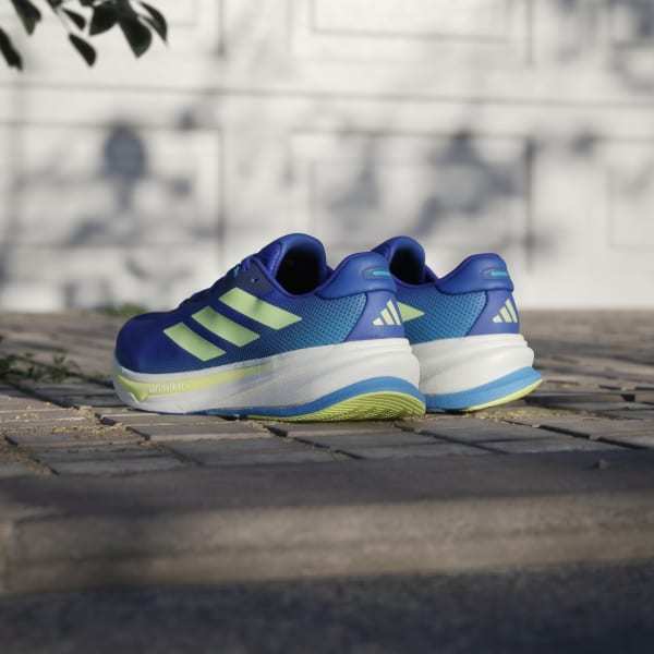 You got into running, and now there's a race on your calendar. Keep making progress in these adidas running shoes for daily runs. They ride on a Dreamstrike+ midsole, our lightweight super foam tuned for comfort. Support Rods help guide you from heel strike to toe off. Our new refined engineered sandwich mesh upper and premium heel construction is elegantly designed for optimized breathability for our most comfortable fit yet. Recognized by the American Podiatric Medical Association for promoting good foot health; this is Supernova Rise 2.