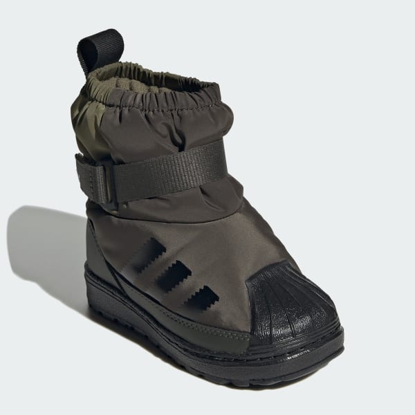 With the iconic shell toe design and a winter-ready build, these toddlers' adidas Superstar boot shoes are made for little ones' adventures. The textile upper is water repellent to keep tiny toes dry, and the lug outsole grips the ground for stable steps. Hook-and-loop straps make them easy to slip on and off, and the flexible midsole provides nonstop comfort.