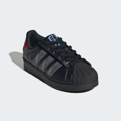 The Superstar LED Lights Comfort Closure Elastic Lace Shoes are bringing back iconic street style of the 90s and 2000s. This time, they're for kids, with playful predator-inspired LED lights integrated into the stripes.The elastic laces and hook-and-loop closure offer a snug fit, making them easy for kids to put on and take off. The synthetic upper provides durability, while the textile lining offers comfort for long wear. With a rubber outsole, these shoes are great for street adventures, offering grip and stability. The Superstar branding on the side and the adidas logo on the tongue label add a touch of classic style. Let your kids shine with these shoes, where heritage meets fun. Inspire confidence and style with these iconic adidas classics that recall the bigger predator soccer story in the collection.