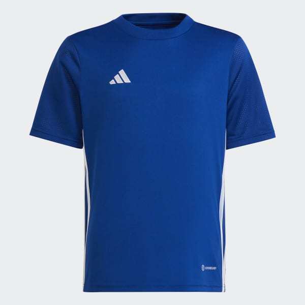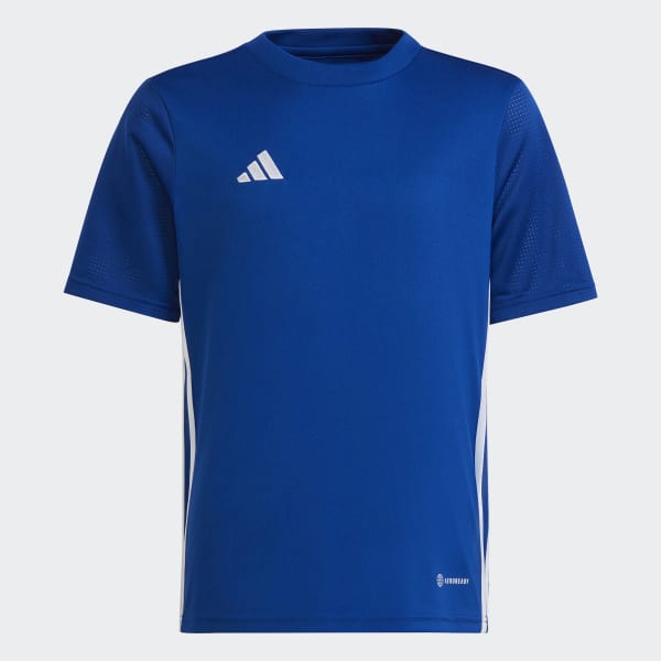 Always be at your best. This juniors' adidas soccer jersey keeps it simple with the signature 3-Stripes and 3 Bar Logo. Moisture-absorbing AEROREADY and mesh sleeves will keep you dry and comfortable all game long. Made with 100% recycled materials, this product represents just one of our solutions to help end plastic waste.