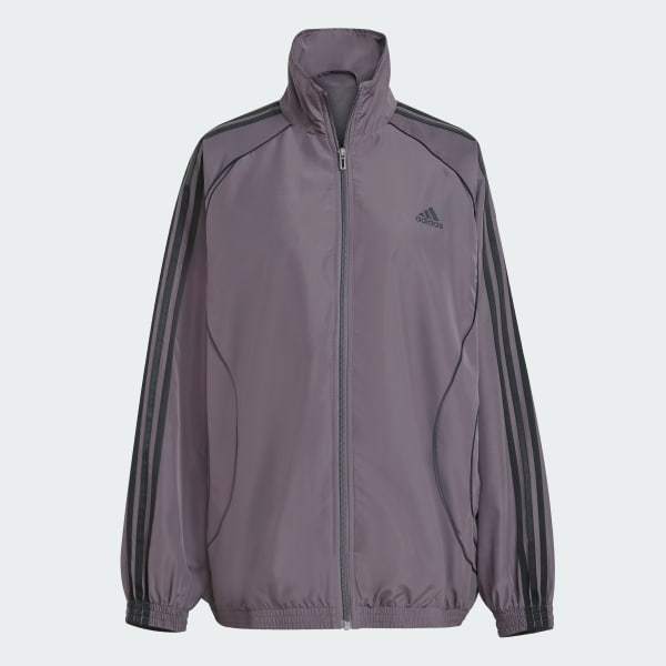 This adidas track top is all about sporty style. It's made from woven fabric that's soft and lightweight, and generously cut to layer easily over your favorite tees. Signature 3-Stripes down the sleeves and a stand-up collar give it that classic athletic look.
