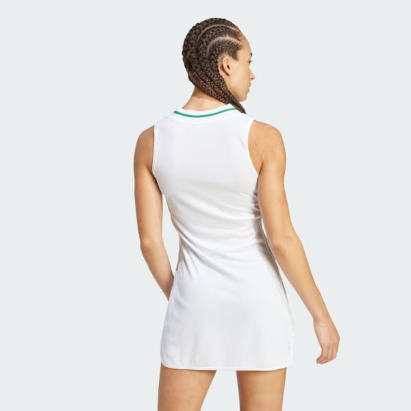 Hit the tennis court in a style you can call your own. Designed for the world's premier grass court tournament, this dress teams heritage adidas vibes with modern performance. CLIMACOOL wicks and disperses sweat for cool, dry and distraction-free performance. The slim fit hugs your body, giving you a streamlined silhouette and keeping you quick.CLIMACOOL helps you manage sweat with materials that wick and manage sweat quickly. Its fast-dry fibers give you a fresh-skin feel.