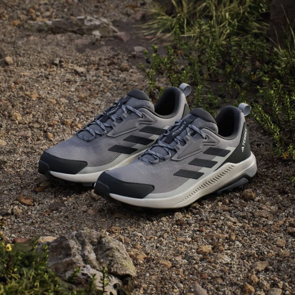 From short forest walks to extended day hikes, these adidas Terrex hiking shoes offer support and comfort across a range of trails. From the easy-wearing feel of a low-cut fit to plush midsole cushioning, these shoes blend a lightweight feel with maximum comfort. A lugged Traxion outsole provides grip in all directions so you feel confident in your footing. By choosing recycled, we are able to reuse materials that have already been created, which helps to reduce waste. Renewable materials choices will help us to remove our reliance on finite resources. Our products made with a blend of recycled and renewable materials feature at least 20% total of these materials.