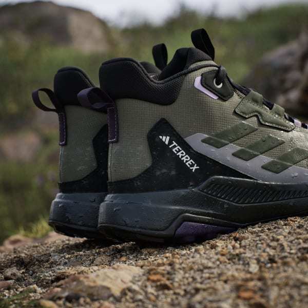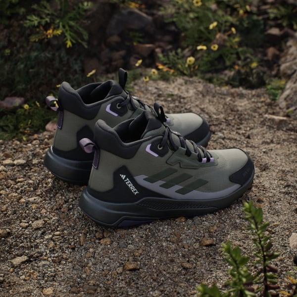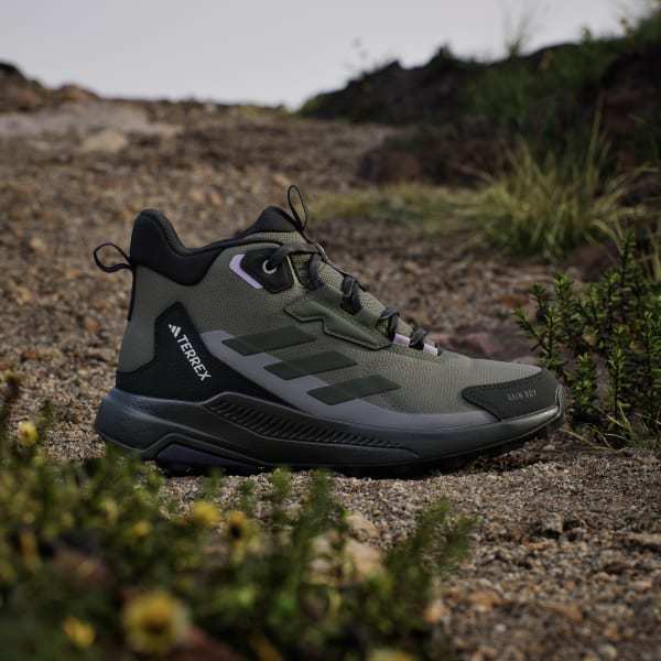 Wander. Roam. Explore. Lace up these adidas Terrex hiking shoes and explore high and low, wet or dry. A mid-height cuff offers ankle support, and a cushioned midsole delivers lasting comfort. RAIN.RDY works with a gusseted tongue to seal out the elements, keeping your feet dry and comfortable in wet conditions. Built for durability over the long haul, they feature a Traxion outsole for a sure-footed grip.By choosing recycled, we are able to reuse materials that have already been created, which helps to reduce waste. Renewable materials choices will help us to remove our reliance on finite resources. Our products made with a blend of recycled and renewable materials feature at least 20% total of these materials.
