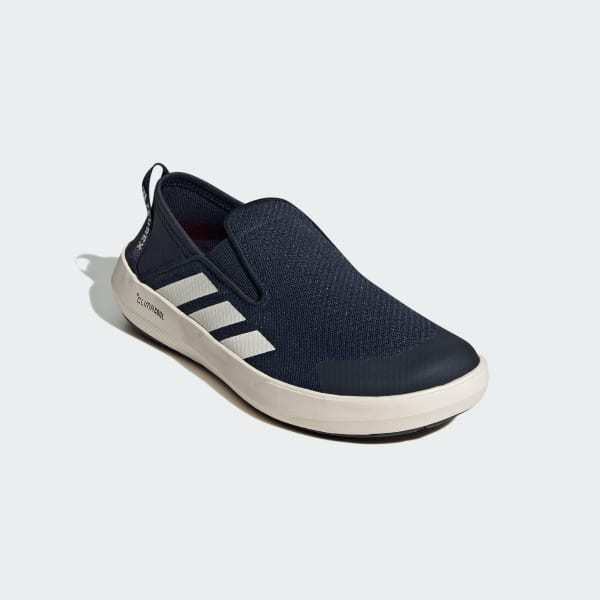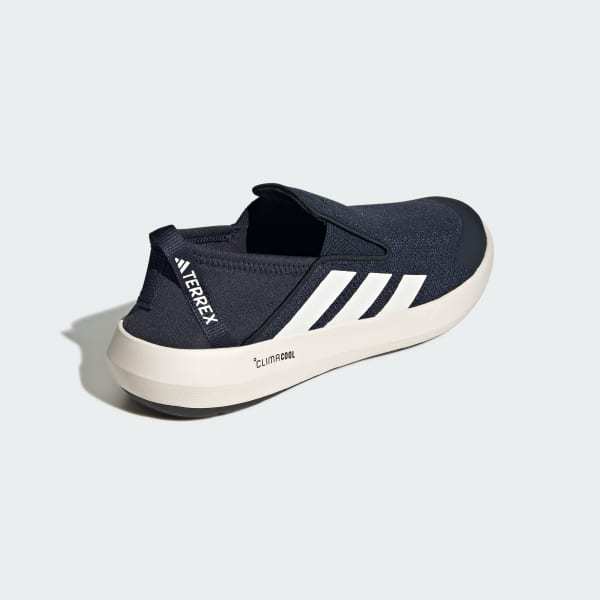 Float a river, hike a rocky shoreline or relax in town. These adidas Terrex boat shoes are clip-on sneakers made for comfort, support and traction in or around water. From boat to beach or town, CLIMACOOL wicks and disperses sweat for cool, dry and distraction-free comfort. They have a snug, sock-like fit with a quick-drying upper and a grippy outsole for confident grip on slippery surfaces.CLIMACOOL helps you manage sweat with materials that wick and manage sweat quickly. Its fast-dry fibers give you a fresh-skin feel.