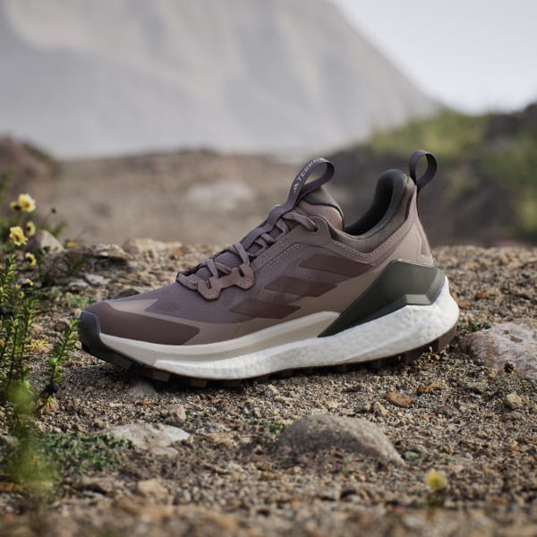 From day hike to multi-day trek, these adidas Terrex Free Hiker 2.0 Low Hiking Shoes support your feet with the lightweight feel of a trail runner and the stability of a hiking boot. A breathable upper helps your feet regulate their temperature, and the gusseted tongue construction offers step-in ease and comfort. The BOOST midsole energizes every stride with extra energy and provides all-day comfort. The EVA frame adds stability through rugged, rocky terrain. By choosing recycled, we are able to reuse materials that have already been created, which helps to reduce waste. Renewable materials choices will help us to remove our reliance on finite resources. Our products made with a blend of recycled and renewable materials feature at least 20% total of these materials.