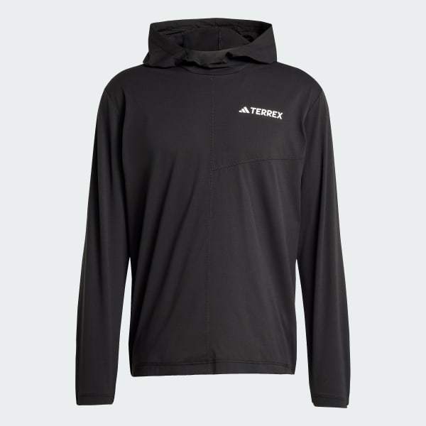 Run, walk or scramble, this adidas Terrex hooded top is a go-to for hikes, trail runs and active days outdoors. The lightweight hoodie offers unrestricted mobility, and CLIMACOOL wicks and disperses sweat for cool, dry and distraction-free performance. Built-in odor control keeps it feeling fresh from trailhead to summit and back.CLIMACOOL helps you manage sweat with materials that wick and manage sweat quickly. Its fast-dry fibers give you a fresh-skin feel.By choosing recycled, we are able to reuse materials that have already been created, which helps to reduce waste. Renewable materials choices will help us to remove our reliance on finite resources. Our products made with a blend of recycled and renewable materials feature at least 70% total of these materials.