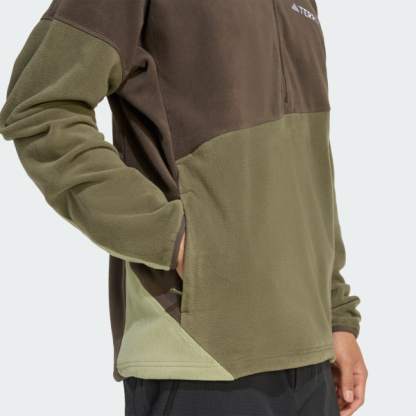 Start the day ready for adventure. This adidas Terrex fleece is a go-to layer for trail days and mountain time. CLIMAWARM traps heat and releases sweat for a warm, dry and focused performance. It's the versatile fleece you can wear hiking and exploring or under a shell for added warmth anytime. Side pockets add utility, and a half zip lets you vent.CLIMAWARM has insulating materials that trap warmth for optimal body temperature. Stay dry inside with sweat-wicking fibers that keep skin dry and comfy. Dial up warmth retention with first layer comfort to boost heat.This product is made with 100% recycled materials. By reusing materials that have already been created, we help to reduce waste and our reliance on finite resources and reduce the footprint of the products we make.