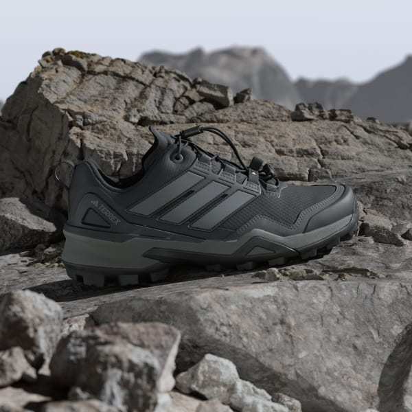 Designed for hikes and rugged summit scrambles, these adidas Terrex Skychaser hiking shoes balance protection, control and comfort for moving fast on and off the trail. They combine the agile, responsive feel of trail running shoes with the support and durability of hiking shoes. Step-in comfort and a lightweight feel keep you focused on the trail ahead. A waterproof GORE-TEX EPE membrane seals out wet conditions while letting your feet breathe and regulate temperature. A ripstop upper with abrasion-resistant overlays keeps them light and durable. The all-conditions grip of Continental™ Rubber maintains traction across all surfaces, wet or dry. The ultralight Lightstrike cushioning allows for responsive feel and agile footwork.By choosing recycled, we are able to reuse materials that have already been created, which helps to reduce waste. Renewable materials choices will help us to remove our reliance on finite resources. Our products made with a blend of recycled and renewable materials feature at least 20% total of these materials.