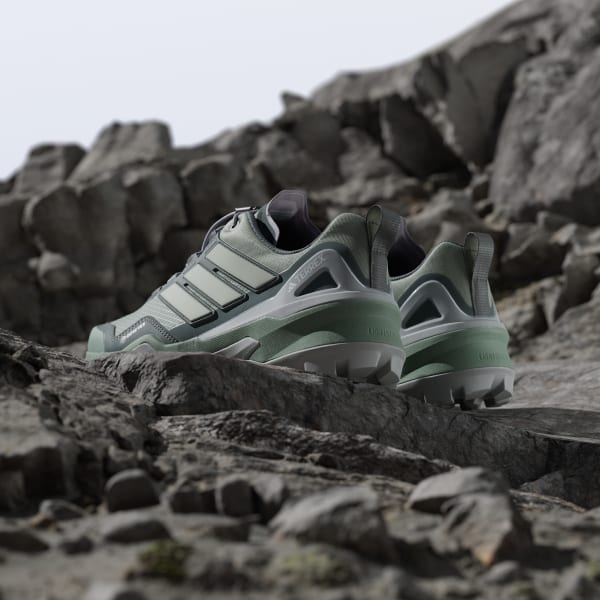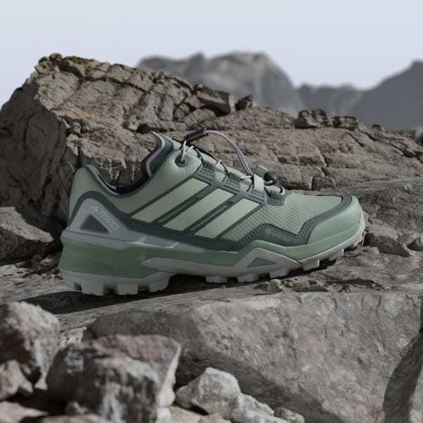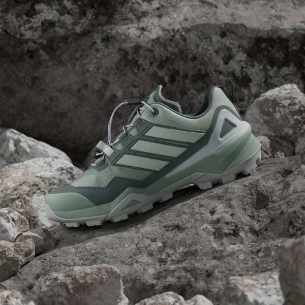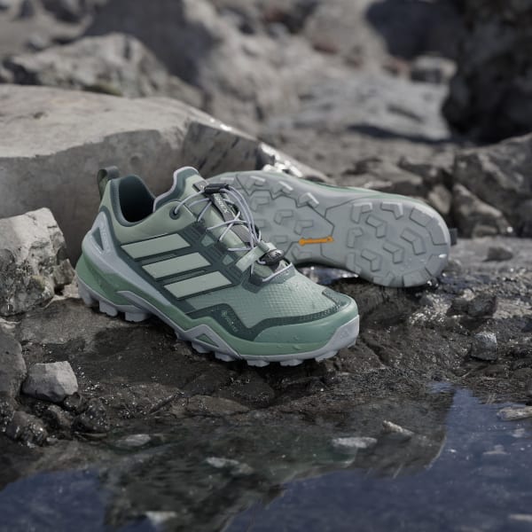Designed for hikes and rugged summit scrambles, these adidas Terrex Skychaser hiking shoes balance protection, control and comfort for moving fast on and off the trail. They combine the agile, responsive feel of trail running shoes with the support and durability of hiking shoes. Step-in comfort and a lightweight feel keep you focused on the trail ahead. A waterproof GORE-TEX EPE membrane seals out wet conditions while letting your feet breathe and regulate temperature. A ripstop upper with abrasion-resistant overlays keeps them light and durable. The all-conditions grip of Continental™ Rubber maintains traction across all surfaces, wet or dry. The ultralight Lightstrike cushioning allows for responsive feel and agile footwork.By choosing recycled, we are able to reuse materials that have already been created, which helps to reduce waste. Renewable materials choices will help us to remove our reliance on finite resources. Our products made with a blend of recycled and renewable materials feature at least 20% total of these materials.