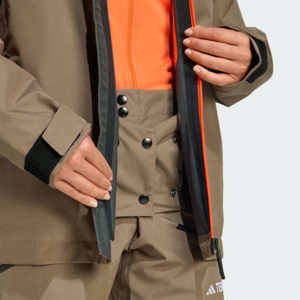 Freeride-inspired and made for mobility, this adidas Terrex ski and snowboard jacket balances weather protection and breathability with a soft, easy-moving feel. It's made with CLIMAPROOF+ with superior engineering and advanced materials that unite for dry, comfortable and unrestricted performance. adidas Primeknit offers waterproof, breathable and stretch performance with a high abrasion resistance that keeps you comfortable through extended efforts and versatility to adapt to changing weather. A full set of snow-related features includes underarm vents, a snow skirt and heat seal cuffs.CLIMAPROOF+ locks out storms with waterproof materials and design to block harsh weather. Stay free from wind with wind-resistant and breathable material for extra comfort. Engineered features boost protection and breathability.