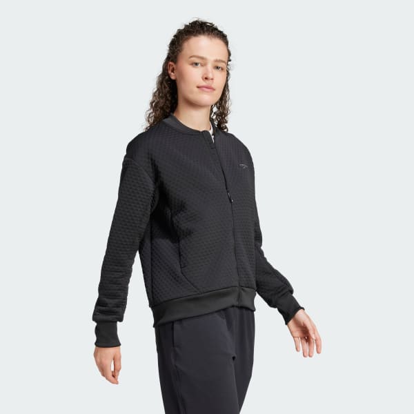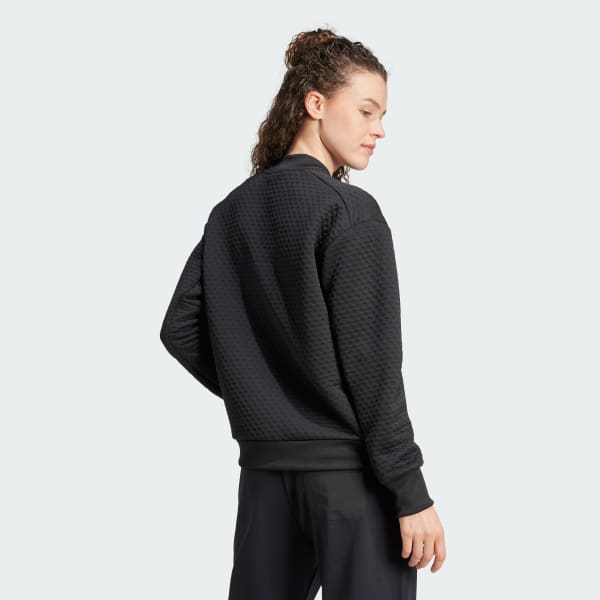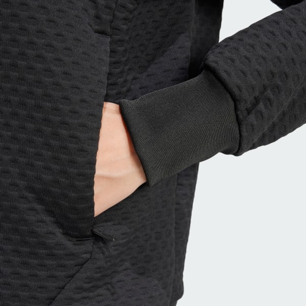 Versatile warmth for exploring near and far, this adidas sweater jacket keeps you warm with minimal bulk. The double knit lets your body regulate its temperature, while a loose fit adds modern style. Offset shoulder seams let you carry your pack in comfort. Side zip pockets stow everyday essentials for hands-free exploring.This product is made with 100% recycled materials. By reusing materials that have already been created, we help to reduce waste and our reliance on finite resources and reduce the footprint of the products we make.