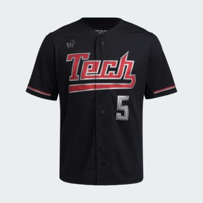 A Red Raiders baseball jersey made with recycled materials.