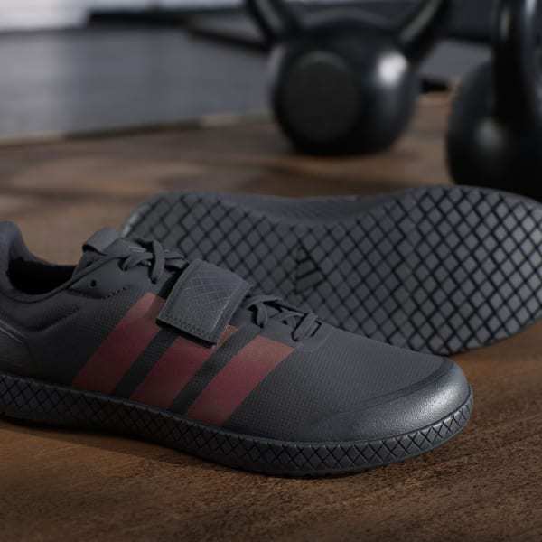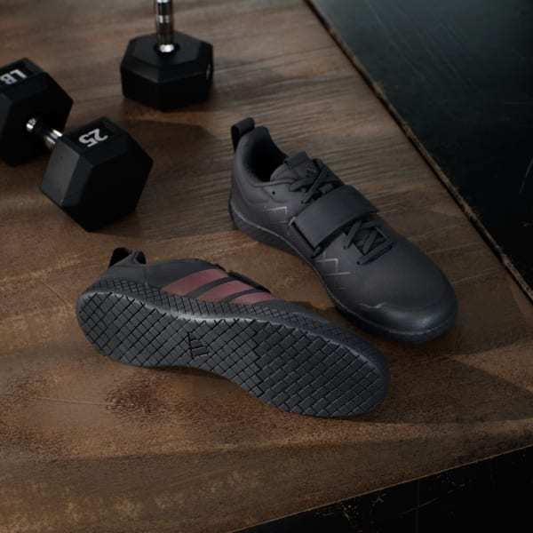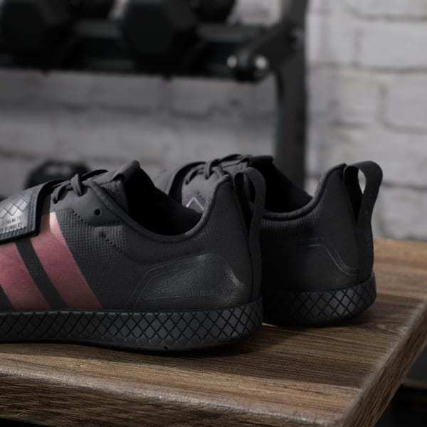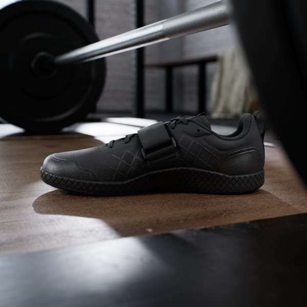 Created for no-fuss lifting, these adidas weightlifting shoes have a zero heel raise to produce the low-to-the-ground stance many deadlifters prefer. Complementing the lace closure, that wide hook-and loop strap adds extra lockdown. A grippy rubber outsole and roomy toe box ensure you're comfortable and stable under the heaviest weights.