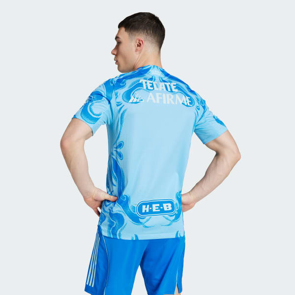Show your fierce support for Tigres UANL on the road in this adidas away authentic jersey. Inspired by the club's dynamic crest, a tattoo-style tiger graphic stares out from the imposing design. Created for ruthless on-pitch displays, this soccer shirt has a lightweight, performance-focused build. On the chest, a heat-applied team badge completes the ferocious look.
