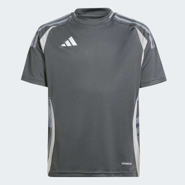Push your play to new heights in a juniors' adidas soccer jersey built for intense action. Created to deliver performance and style on the pitch, this Tiro 24 Competition jersey keeps you focused with breathable mesh inserts and moisture-wicking AEROREADY. The slim, streamlined fit means you're always one step ahead of your opponents.This product is made with 100% recycled materials. By reusing materials that have already been created, we help to reduce waste and our reliance on finite resources and reduce the footprint of the products we make.