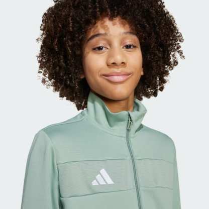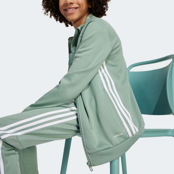 Bring your beautiful game everywhere you go. This juniors' Tiro 25 Essentials jacket from adidas takes its lead from soccer training apparel to offer a sporty look and comfortable feel. AEROREADY ensures you stay dry and focused when the pressure's on. That clean design transitions seamlessly from pitch to street.This product is made with 100% recycled materials. By reusing materials that have already been created, we help to reduce waste and our reliance on finite resources and reduce the footprint of the products we make.