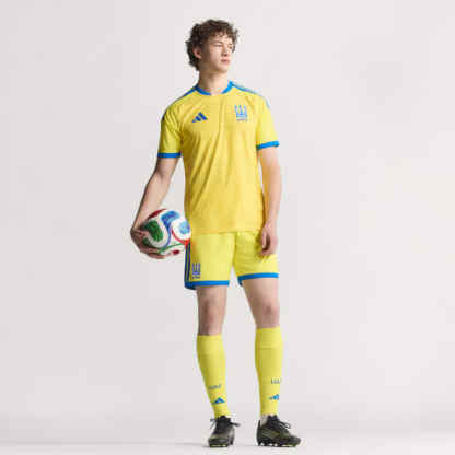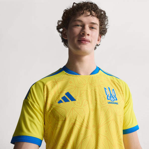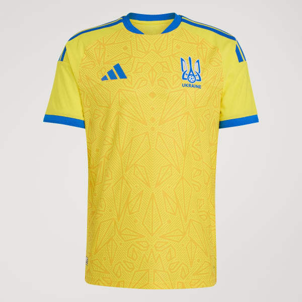 Celebrate the rich heritage of Ukraine with the Ukraine 26 Home Authentic Jersey. Inspired by the nation's coat of arms, this jersey blends cultural symbols with modern athletic performance, making it a proud tribute to Ukraine's traditions.Designed for on-field match usage, this jersey incorporates Climacool+ technology. Superior engineering and advanced materials unite for a cool, dry and distraction-free performance, helping you stay focused on your moves.Crafted in transfer-knit jacquard, the jersey offers a slim fit that moves with you, bringing both on-pitch comfort and style. The sweat-wicking materials are strategically placed in high-sweat zones, helping you stay comfortable during intense matches.As the official match jersey worn by players on the pitch, the top features a heat-applied authentic label with hidden UV print, serving as a seal of authenticity. The bold 3-Stripes and seasonal collar add an extra touch of iconic style.adidas brings you a match-day jersey that not only celebrates Ukrainian heritage but also incorporates advanced sportswear technology. Wear it with pride and be part of the next generation of performance.