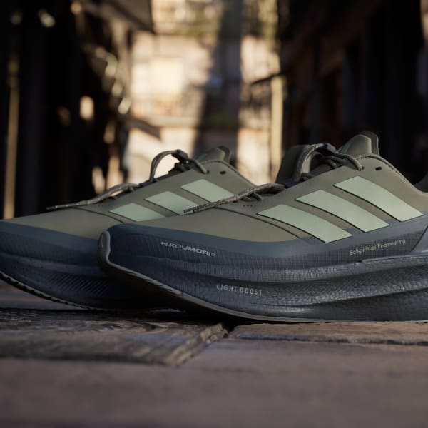Born to run, these adidas running shoes are the result of a special partnership with Hermanos Koumori, a Mexican brand that's leading running culture forward. True to the Ultraboost name, they're made to feel good. Light BOOST cushioning returns energy endlessly. A soft upper hugs your foot with every footstrike and long stride. And a rubber outsole grips the ground, wherever the run takes you.