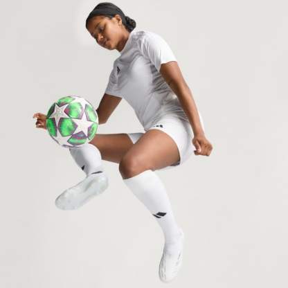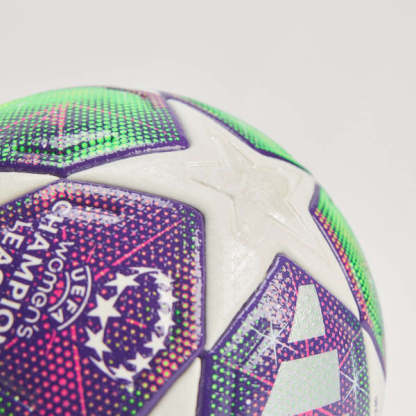 Lighting up UWCL nights. Clad in heavenly graphics, this adidas soccer is the official match ball of the 25/26 competition's League Stage. Beyond those shining stars and majestic auroras, a seamless construction and high-grade butyl bladder make for predictable play. FIFA's highest rating confirms its stellar quality.