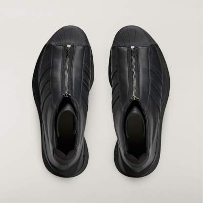 One of the most advanced and daring Y-3 profiles to date, the Y-3 Gendo Pro Model Shoes are designed with a fully hollow space in the midsole. They take to heart a philosophical Japanese concept called Ma, which explores how a pause in time or negative space can generate beauty in a way that isn't absent of anything at all, in the end. The bold expression contrasts with cues from the adidas Pro Model shoes, executed in smooth, premium leather. A full-zip closure system replaces classic laces. Yohji Yamamoto's signature signs off as a final touch.