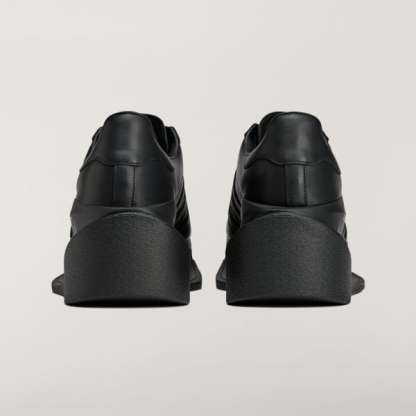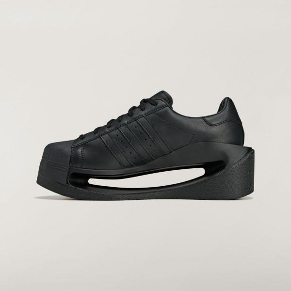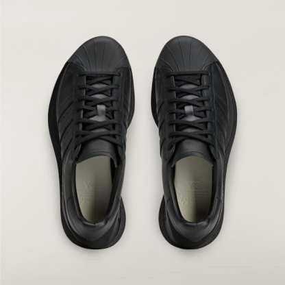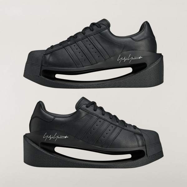 One of the most advanced and daring Y-3 profiles to date, the Y-3 Gendo Superstar shoes are designed with a fully hollow space in the midsole. They take to heart a philosophical Japanese concept called Ma, which explores how a pause in time or negative space can generate beauty in a way that isn't absent of anything at all, in the end. The bold expression contrasts with cues from classic archival shoes, the adidas Superstar shoes — one of Yohji Yamamoto's favorite silhouettes. A smooth, premium leather upper with a leather and suede lining sits atop the EVA midsole, and Yohji Yamamoto's signature signs off as a final touch.