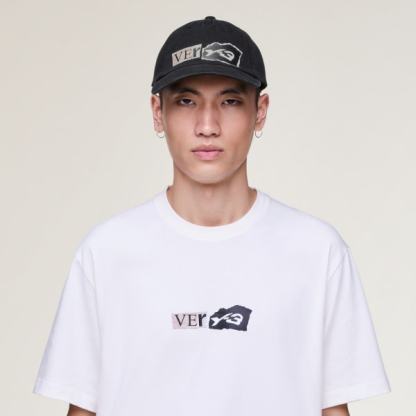 Introducing the Y-3 Graphic Dad Cap.Crafted from cotton twill, this cap by Y-3 and adidas features a stone-washed finish. The 5-panel construction offers comfort, while the quilted brim provides subtle structure.The back slider offers an adjustable fit. At the forefront is the striking printed "Very-3" graphic, a collage-inspired design that reflects a raw, expressive aesthetic with its ripped visuals and mismatched typography.