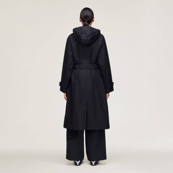 Step into the world of avant-garde fashion with the Y-3 Hooded Trenchcoat Parka. This piece embodies the rebellious spirit and progressive design ethos of Y-3, combining avant-garde aesthetics with practical functionality.The parka's loose and wide fit, complemented by a cinching belt, offers a comfortable yet stylish silhouette. Its wide, high-closed hood is adjustable, providing versatility whether worn up or down.It is adorned with a tonal satin heat transfer logo on the left sleeve, adding a subtle yet distinctive touch.Practicality meets style with two patch pockets and one welt pocket, suitable for carrying essentials. The soft, open plastic snap buttons and rubber stretch bungee cord in the hood allow for easy adjustments.This parka from adidas is not just a garment; it's a statement of style and confidence.