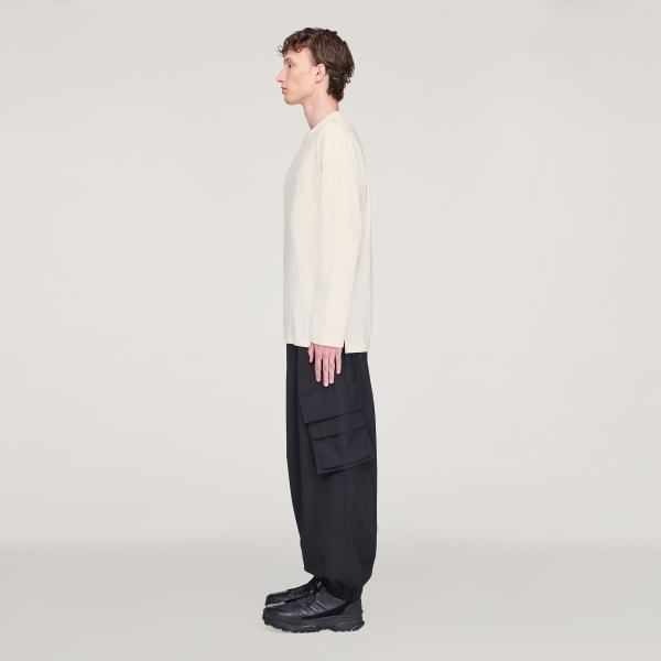 The Y-3 Logo Long Sleeve Tee is defined by Y-3's unconventional fashion and inspired by the adidas history in sportswear.The single jersey knit construction of this t-shirt provides a soft, comfortable feel, while the loose fit and long sleeves offer an elegant silhouette.A round neck design, along with the Y-3 satin heat transfer logo, completes the look, adding a touch of subtle sophistication.