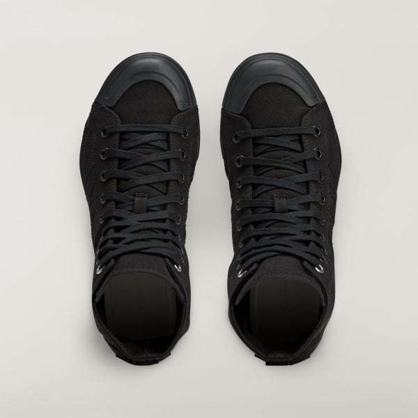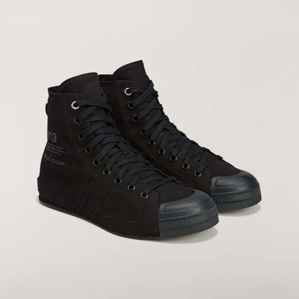 Y-3 once again disrupts adidas DNA to bring us a reimagining of sport style. The Y-3 Nizza Hi shoes completely reinterpret the adidas Nizza with a canvas upper that extends all the way to the outsole. In addition to classic details of the court silhouette, this version introduces a canvas and suede lining plus a removable Lightstrike midsole that elevate the sensation and energize it with running shoe-like responsiveness. Finishing touches include a Y-3 stacked logo graphic on the side and a Yohji Yamamoto signature on the heel patch.