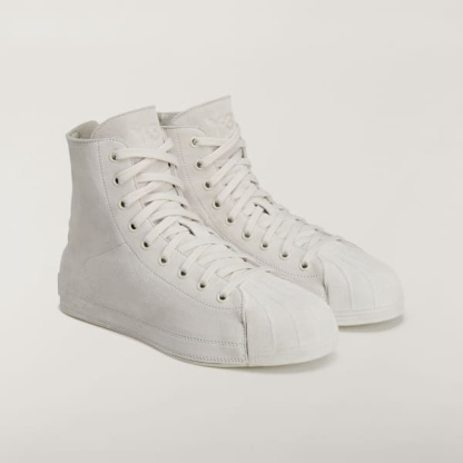 With this style, the worlds of adidas Superstar shoes and Nizza collide. Based on the same ultra-progressive midsole construction of the Y-3 NIZZA, this high-cut silhouette is executed in a full suede upper that extends all the way to the outsole — including the iconic shell toe from the adidas Superstar shoes — to create a distinctive, yet extremely minimalistic look. On top of that, the shoe offers a zipper construction on the heel for easy access. These shoes are finished with a Y-3 logo on the tongue and a Yohji Yamamoto signature on the heel patch.
