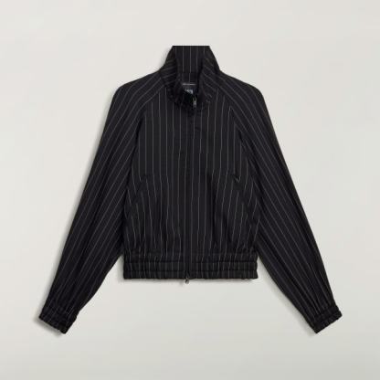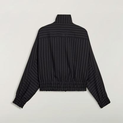 Loose-fitting blouson with a pinstripe pattern for making a style statement.