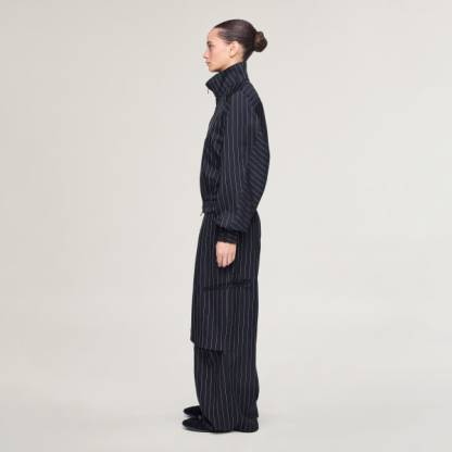 Loose-fit pants with pinstripe design for versatile styling.