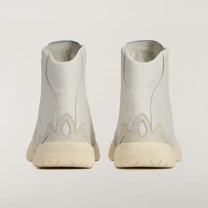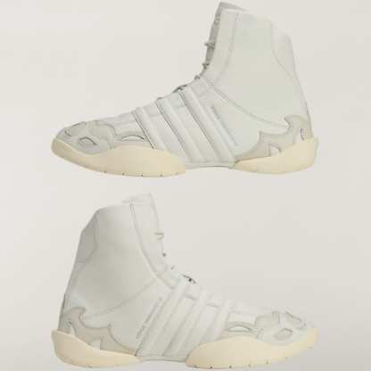 The Y-3 Regu 2002 Hi takes its cues from an influential early-2000s shoe — the Mei — and reinterprets the provocative design for today. Its renowned silhouette is crafted from soft leather, with additional leather overlays reminiscent of ornaments — a design steeped in the archival Y-3 aesthetic. Underneath, the tooling is enhanced with a slim Torsion plate, connecting heel to forefoot.